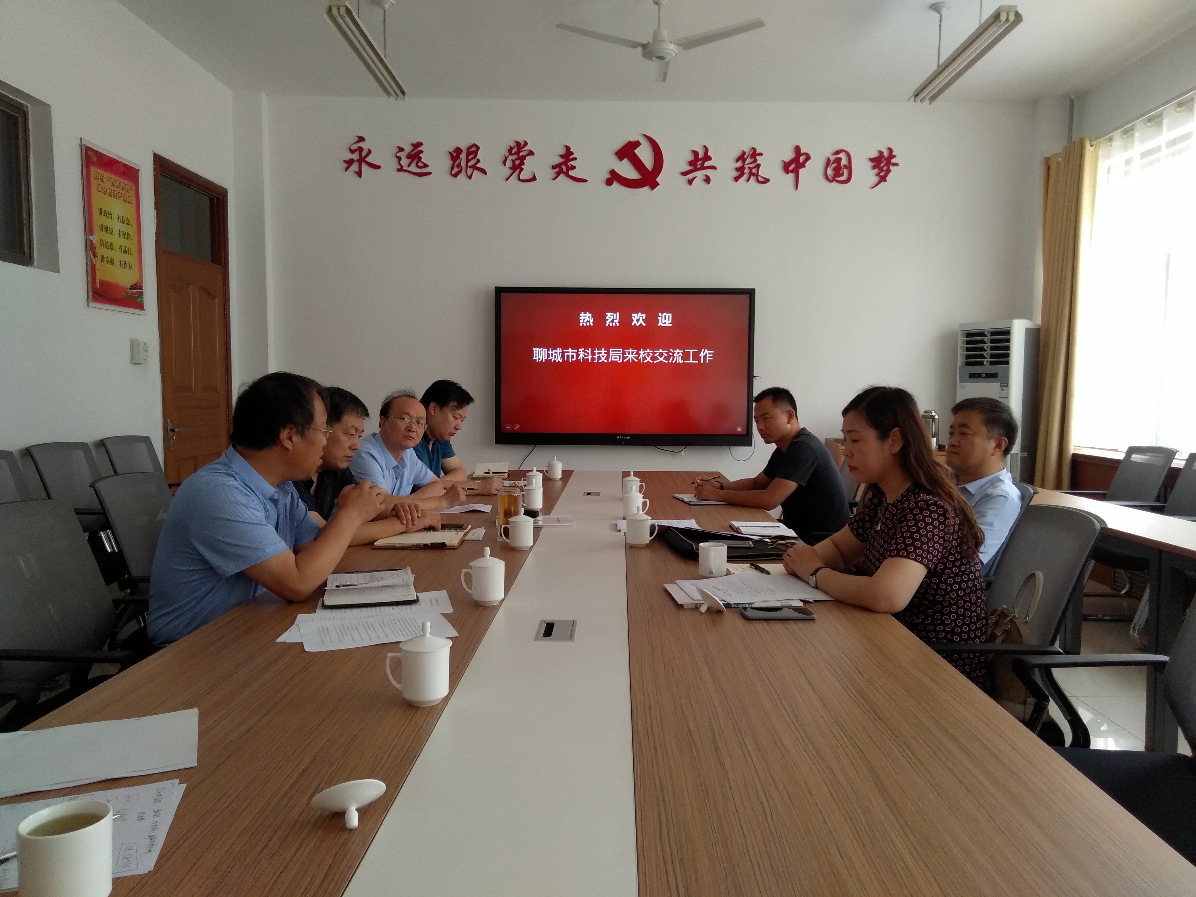 7月17日,聊城市科技局副局长张立新一行三人来校调研校地科技合作事宜。suncitygroup太阳集团服务社会处处长任忠民、科学技术处处长赵建立以及相关人员参加了座谈。