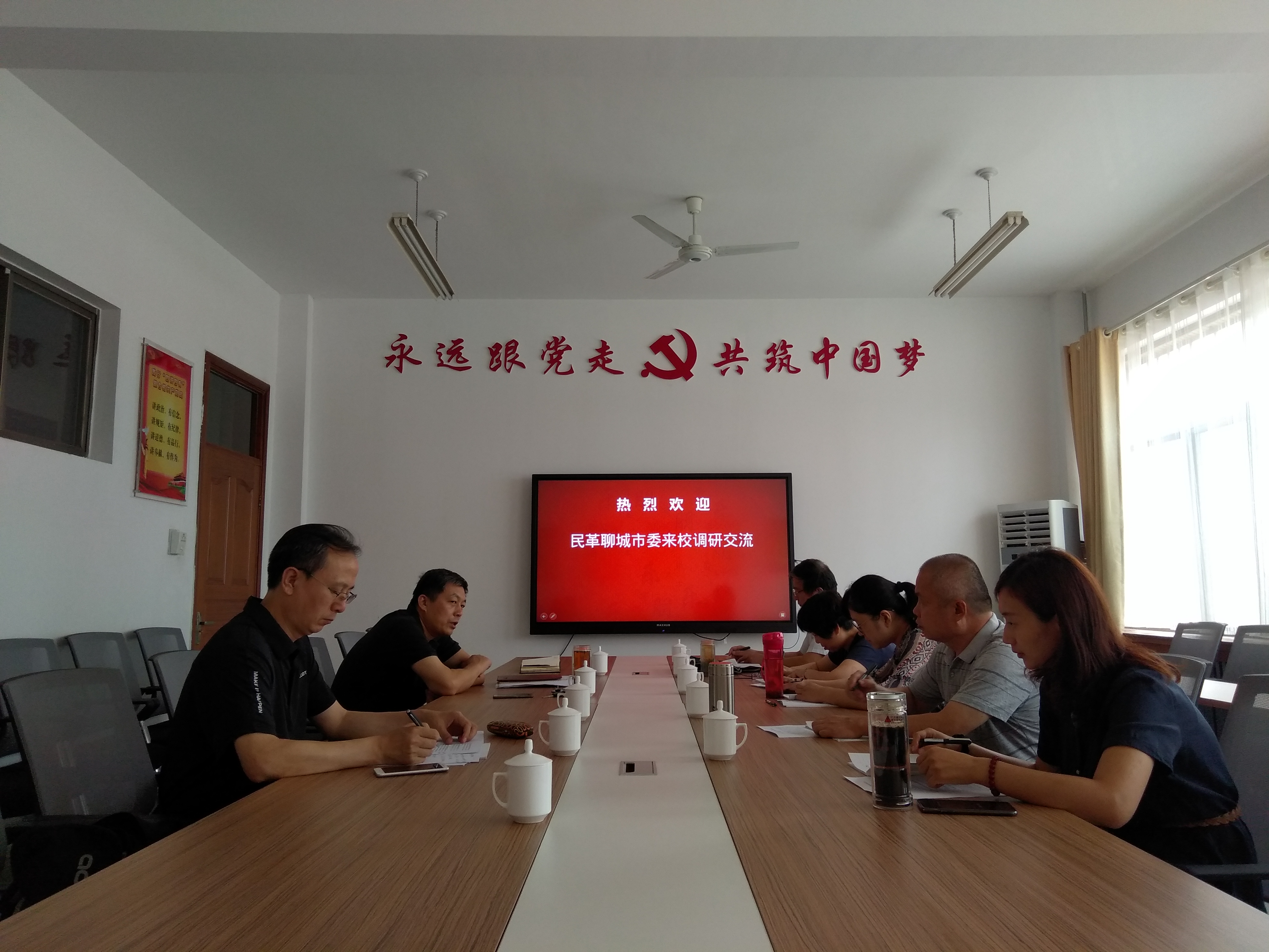 7月18日,民革聊城市委主委王学臣一行5人来校调研校地合作事宜。suncitygroup太阳集团服务社会处处长任忠民及相关人员参加了座谈。